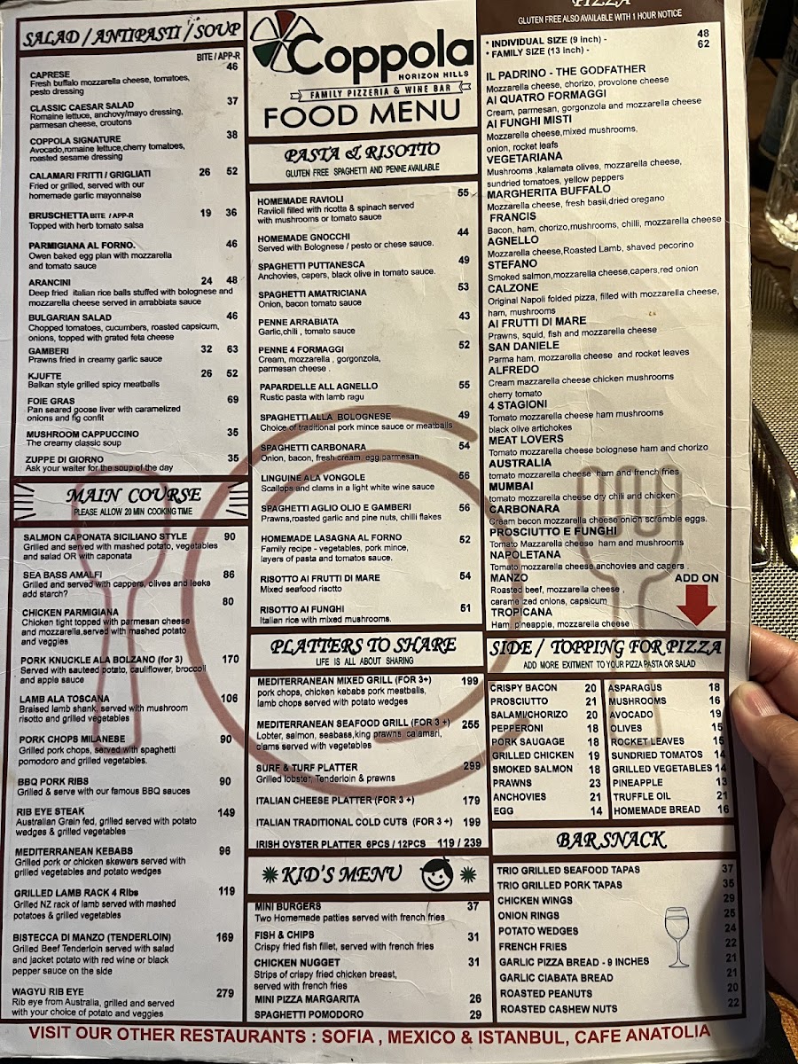 Welcome to Coppola Family Pizza Restaurant, your go-to destination for an exquisite culinary journey in Horizon Hills, Johor Darul Ta'zim. Nestled at 1, Jalan Hijauan 3, this charming eatery offers a delightful selection of authentic Italian cuisine alongside flavors from around the globe, including Mexican, Greek, and Turkish dishes.